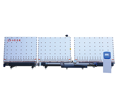 玻璃合片時平壓機前后箱機械手杠桿式托料,(機械式硬限位+活動板吸盤吸附)確保自動合片時玻璃永不錯位。清洗箱 風(fēng)干箱 風(fēng)刀等全不銹鋼制作,外形美觀大方,永不銹蝕。